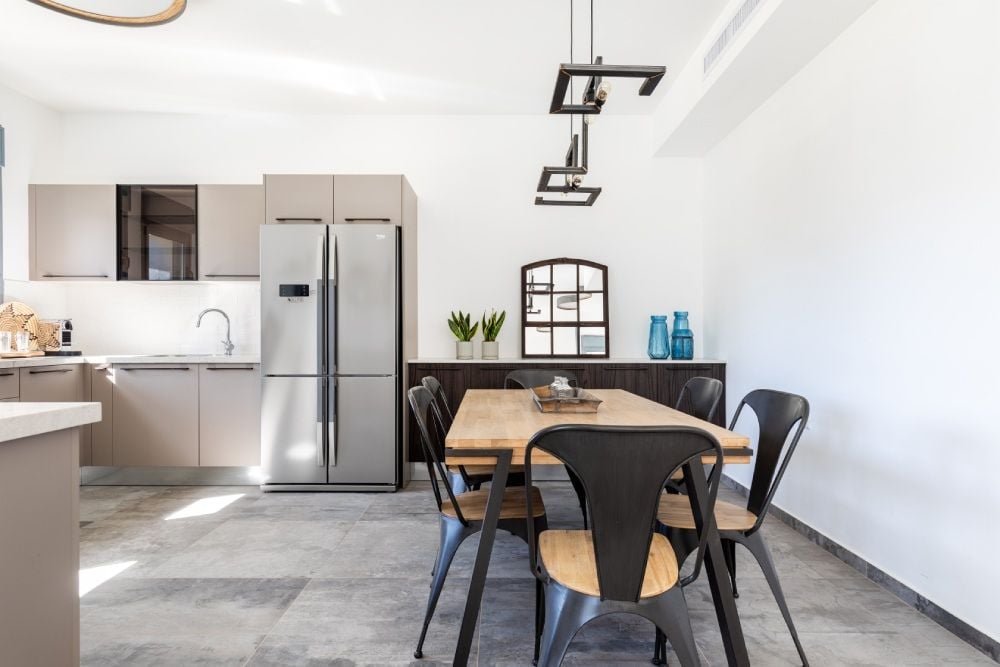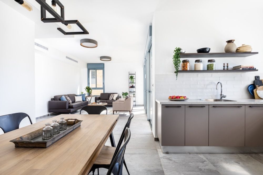 Kitchen and Dining Room - Stylish and Comfortable White, Brown and Black Kitchen and Dining Room in Jerusalem, Israel