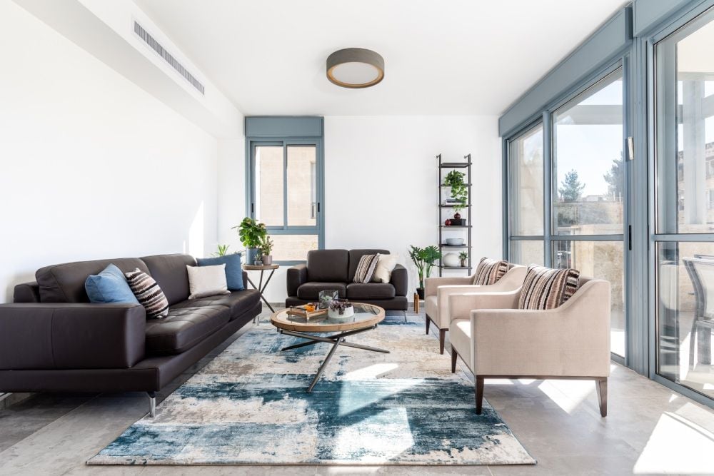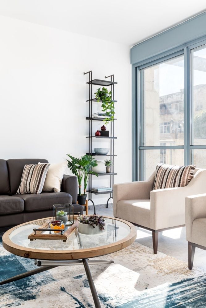 Living Room - Modern and Homey White, Blue and Brown Living Room in Jerusalem, Israel